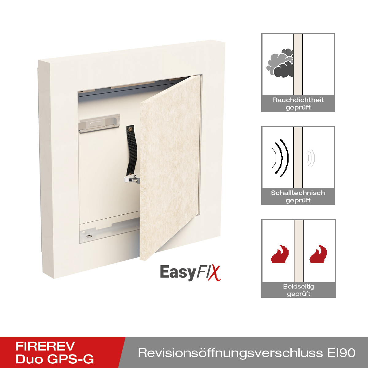Grâce au nouveau cadre de montage EasyFix à plusieurs niveaux du dispositif de fermeture pour trappe d'inspection FIREREV Duo GPS-G, l'installation est désormais encore plus simple et plus efficace, sans pour autant compromettre la sécurité.